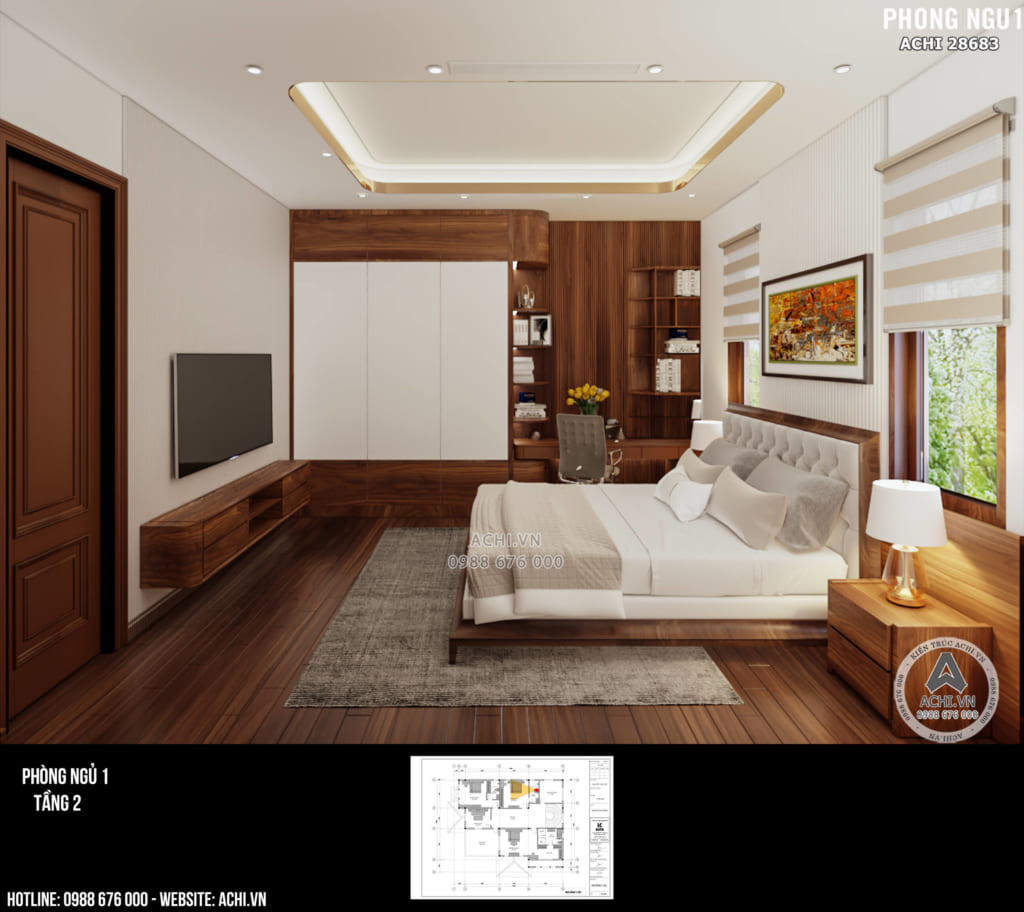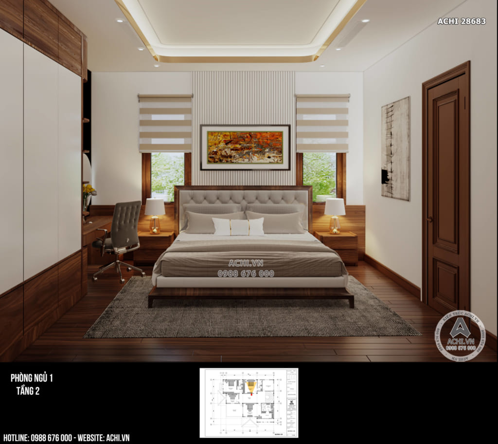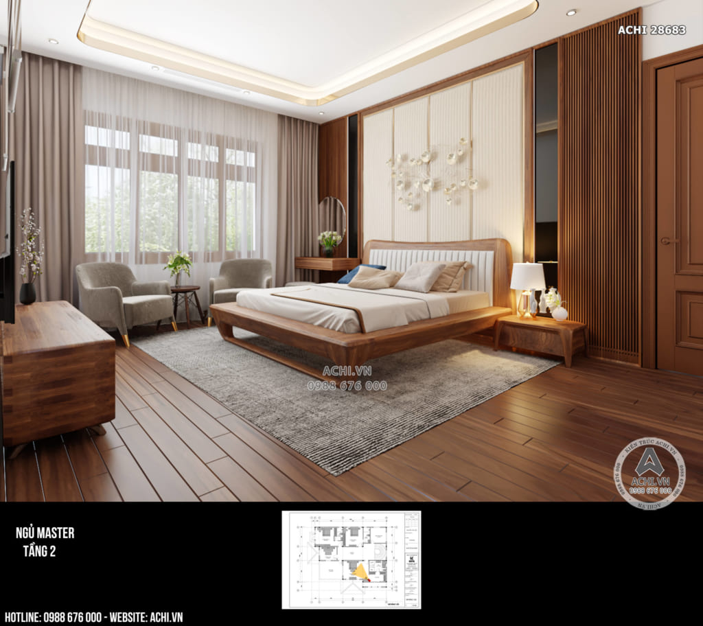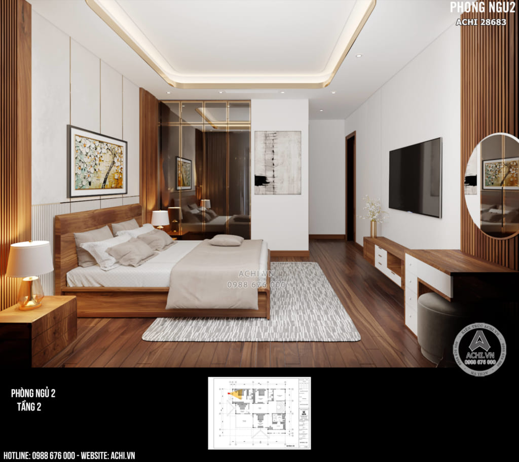 Có thể nói, phòng ngủ ACHI 28683 không chỉ là một không gian để ngủ, mà là nơi nuôi dưỡng những giá trị tinh thần. Ở đó, bạn có thể bắt đầu ngày mới bằng tách cà phê bên khung cửa sổ tầng hai đón nắng, hay kết thúc một ngày bằng những phút giây thư giãn dưới ánh đèn vàng ấm áp. Sự kết hợp hài hòa giữa màu sắc, chất liệu và bố cục không gian khiến căn phòng trở thành một nơi trú ẩn lý tưởng, nơi bạn thực sự là chính mình.