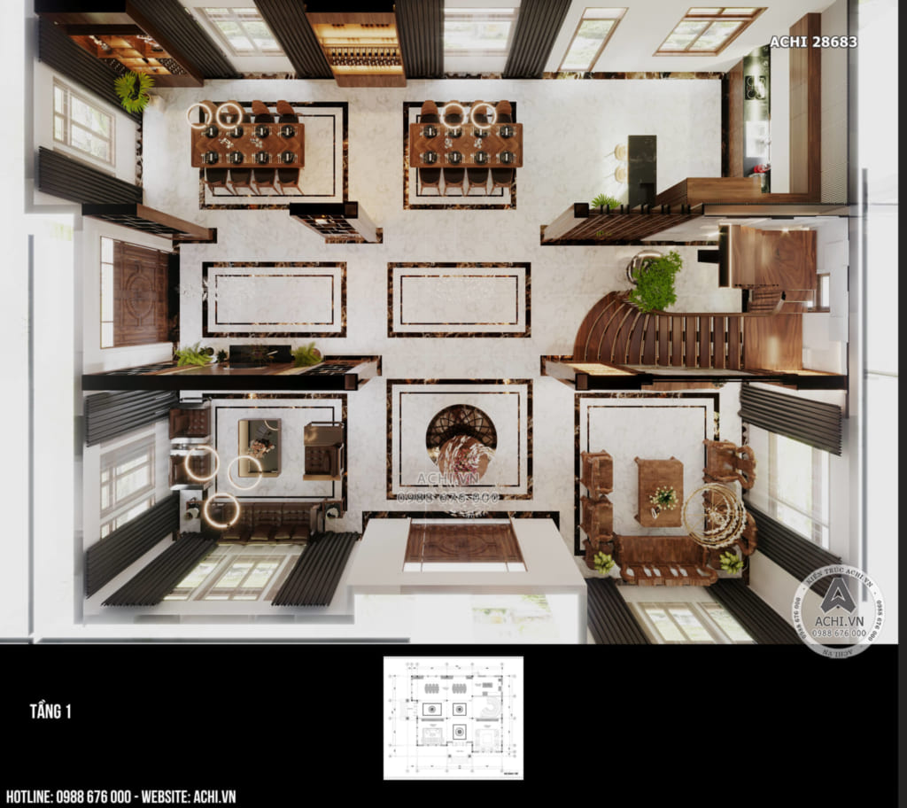 Mẫu thiết kế ACHI-28683 không chỉ là một phương án bài trí nội thất, mà còn là bản hòa ca của ánh sáng, vật liệu và công năng – nơi mọi chi tiết đều có lý do tồn tại. Nếu bạn đang tìm kiếm một không gian phòng khách tầng 1 vừa hiện đại, bền vững theo thời gian, lại thấm đẫm hơi thở cuộc sống đương đại, đây chính là mẫu thiết kế đáng để cân nhắc. Hãy để ACHI đồng hành cùng bạn trong hành trình kiến tạo tổ ấm.